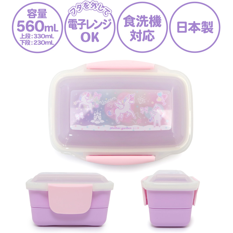 マザーガーデン ユニコーン 2段 お弁当箱 ドーム型 《ハピネス柄》 560mL 日本製