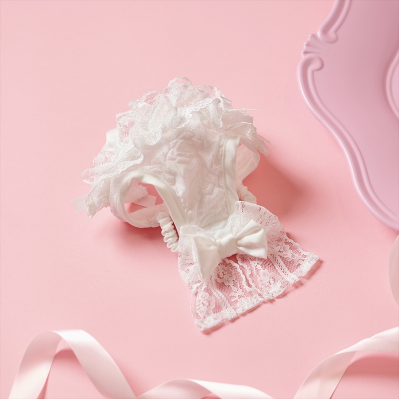 たっぷりのレースフリルとリボンがポイントの真っ白なヘッドドレス。
