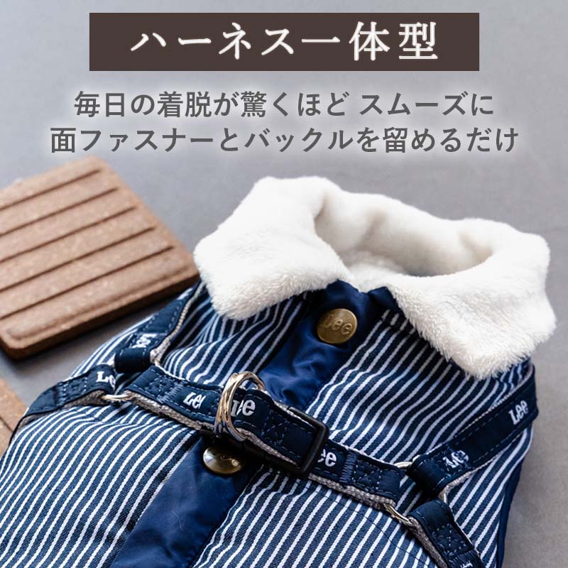 [関連ワード] Lee 犬 服 冬 ヒッコリー アウターハーネス 小型犬 ネイビー 背中開き 秋冬 一体型 おしゃれ かわいい かっこいい