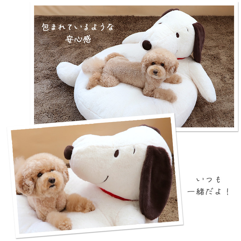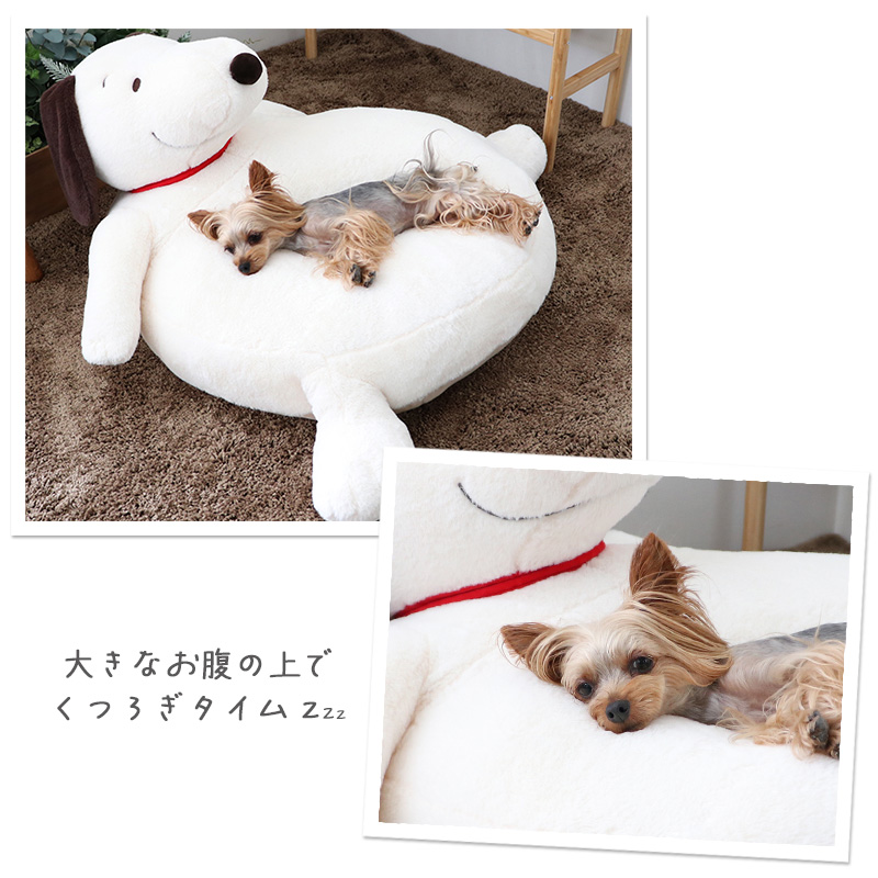 [関連ワード]犬 クッション スヌーピー 100×51㎝ おなかクッション デラックス ペットベッド 小型犬 かわいい 大きい 多頭飼い あごのせ ふわふわ おしゃれ キャラクター