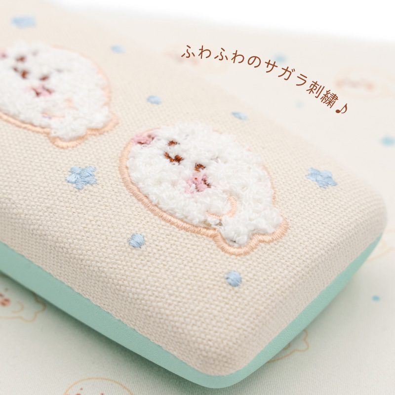 しろたん クロス付 サガラ刺繍 眼鏡ケース 《しろたん》 単品