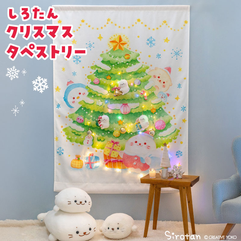 [関連ワード] しろたん クリスマスツリー タペストリー 103×140cm クリスマス タペストリー 壁掛け クリスマス飾り 装飾 ループ リビング 玄関 インテリア 雑貨 アザラシ あざらし かわいい キャラクター しろたんお友だち ギフト プレゼント マザーガーデン