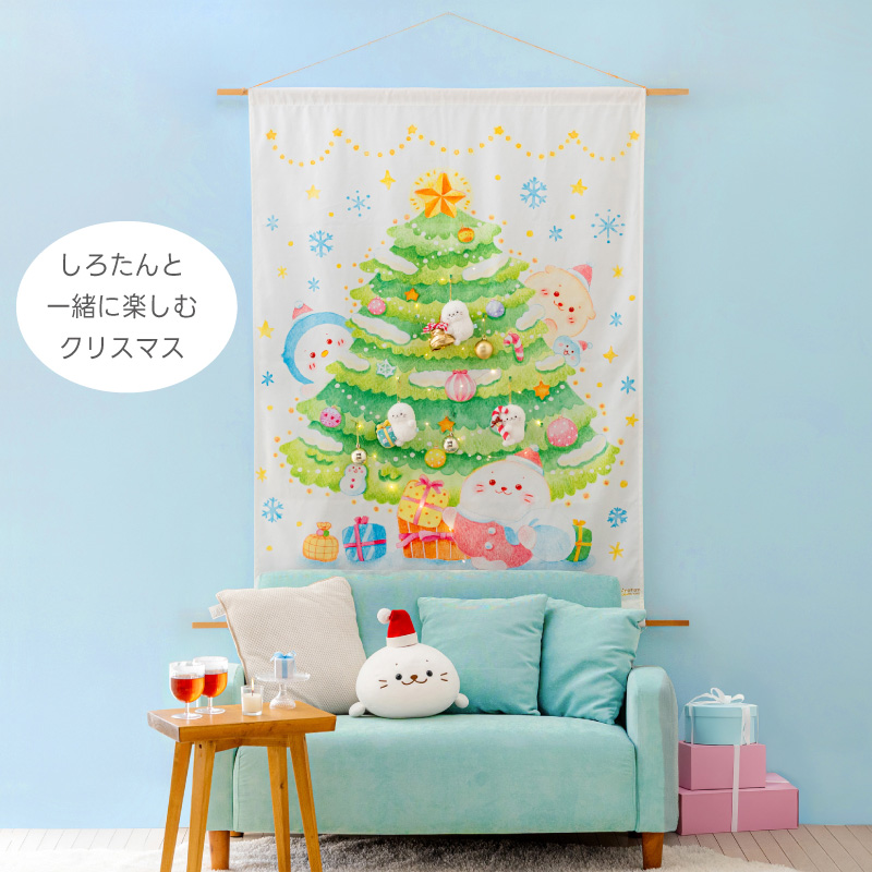 [関連ワード] しろたん クリスマスツリー タペストリー 103×140cm クリスマス タペストリー 壁掛け クリスマス飾り 装飾 ループ リビング 玄関 インテリア 雑貨 アザラシ あざらし かわいい キャラクター しろたんお友だち ギフト プレゼント マザーガーデン