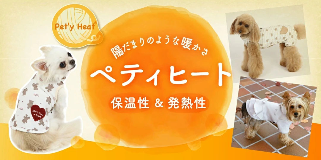 【ペティヒート】発熱性、保温性にすぐれたペットウェアです。空気中の水分を繊維が吸着して、蒸発させる際に発熱します。やわらかく織った生地は手触りも優しく、わんちゃんの体温によってできた暖かい空気を生地に含み、外に逃がしません。
