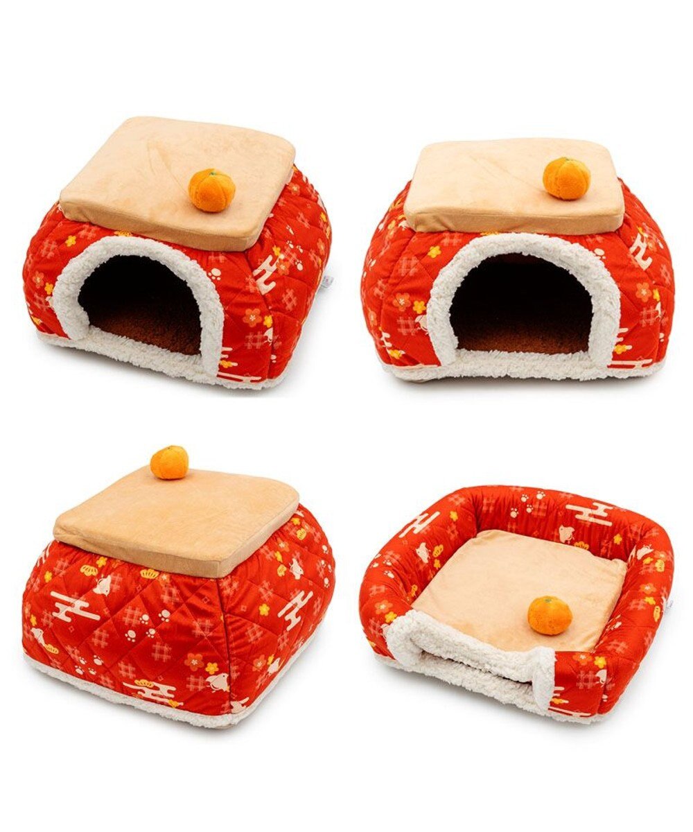 [関連ワード]犬 猫 千鳥柄 こたつ ハウス 室内用 40cm 和柄 コード穴付き おもちゃ付き コタツ ボア かわいい ふわふわ 犬用ベッド 猫用ベッド 暖かい みかん ドーム インスタ映え レッド