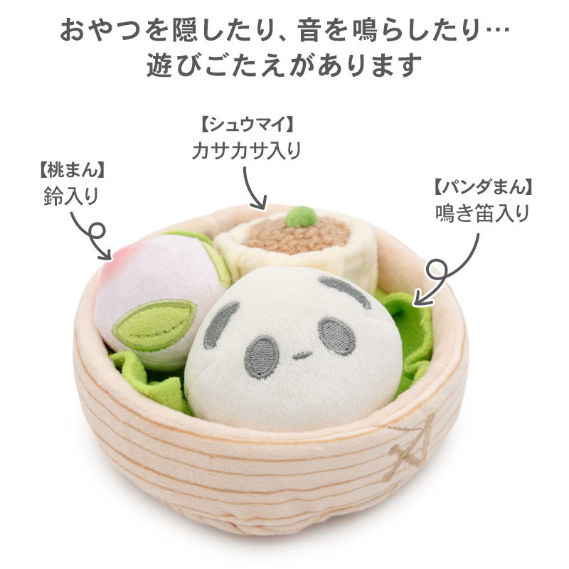 [関連ワード]犬 おもちゃ 知育玩具 ノーズワーク 飲茶 ヤムチャ トイ TOY ストレス解消 蒸籠 桃まん パンダまん シュウマイ 噛む オモチャ ペットトイ 玩具 コミュニケーション 訓練