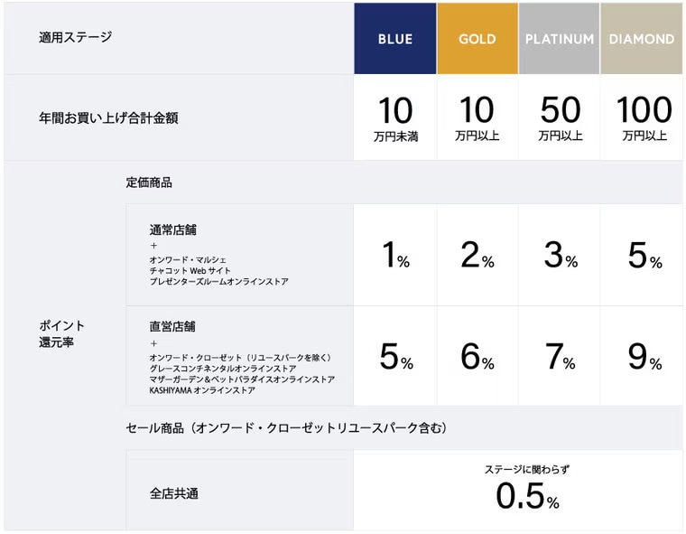 ステージが上がるとポイント還元率もアップし、これまで以上にポイントが貯まりやすくなります。