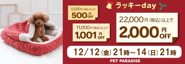 4.「12/12(金)21時~14(日)21時 ラッキーday 5,500円(税込)以上で 500円OFF」「12/12(金)21時~14(日)21時 ラッキーday 11,000円(税込)以上 1,001円OFF」または「12/12(金)21時~14(日)21時 ラッキーday 22,000円(税込)以上 2,000円OFF」にチェックを入れキャンペーン・クーポンを適用します。