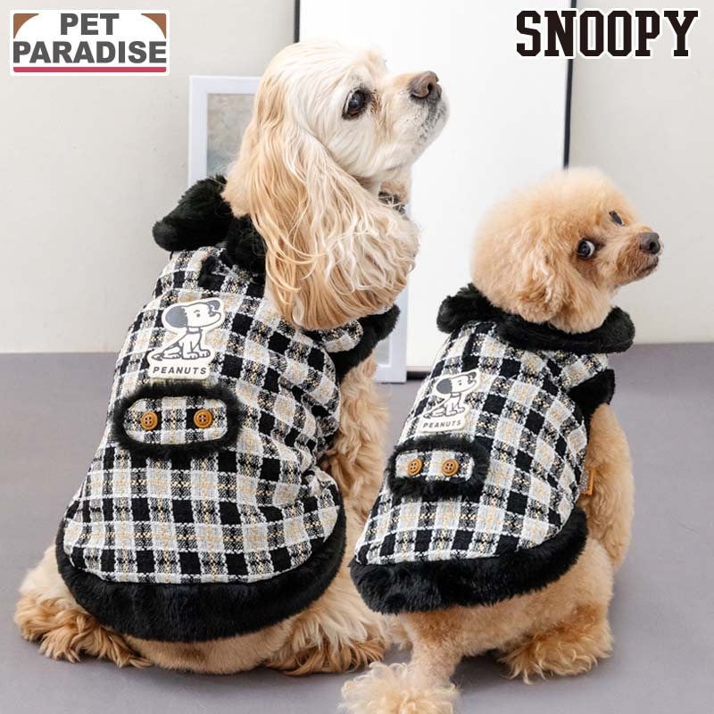 スヌーピー 黒ツイード スカートつなぎ 小型犬