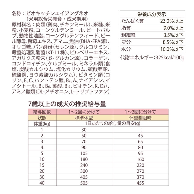 「エイジングネオ」は、7歳からのシニア期を迎える愛犬の体調や食事量の変化を考慮し