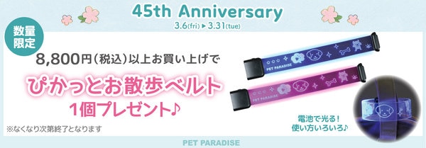 数量限定でぴかっとお散歩ベルトをプレゼント!