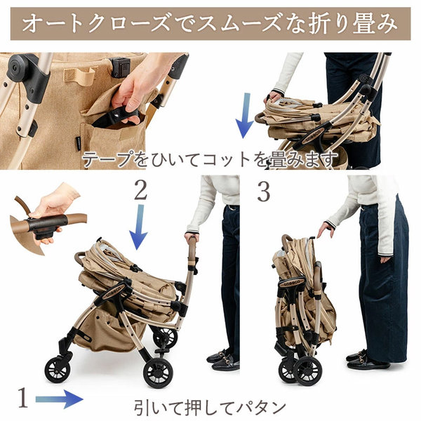 コットを外さず、すっと畳めるsmooca ネオ 3way新登場